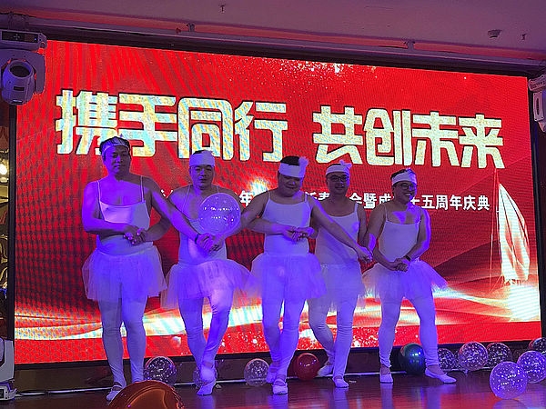 活動中,審計部、評估部、基建部及辦公室的參演人員相繼踴躍登臺,為大家獻上精彩紛呈的表演?;ú康囊磺侗寂堋藩毘?,贏得臺下年輕人的喝彩和共鳴,讓大家感受到了天華所年輕一代員工斗志昂揚的氣場和積極進取的精神面貌。小品《土豪交友大會》、搞笑芭蕾舞《小天鵝》、《舞蹈串燒》等節(jié)目,形式生動活潑,內容豐富多彩,也贏來臺下陣陣喝彩聲和歡笑聲。詩歌朗誦《這一年 那一年 天華15年》則回顧了天華公司15年來走過的不平凡歷程,展示了廣西天華公司員工團結奮斗的寶貴精神財富。在文藝表演的節(jié)目間隙,活動穿插抽獎環(huán)節(jié),使得整個年會暨慶典活動輕松活潑又高潮迭起,歡聲笑語不斷,氣氛融洽祥和。